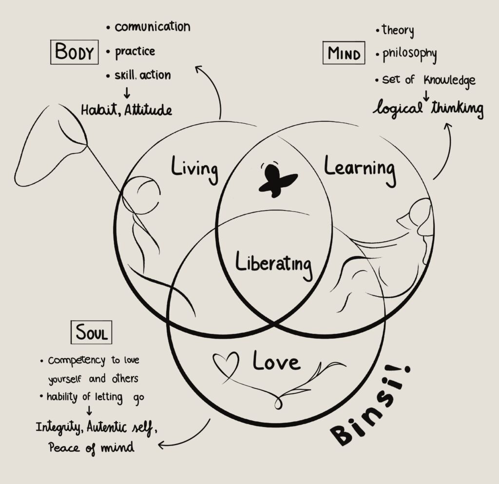 “Binsi! is the WAY, that evokes people to liberate the things that dominate them by learning, living and love, so each of us can cultivate Growth & Peace & Justice among us.” – Nao